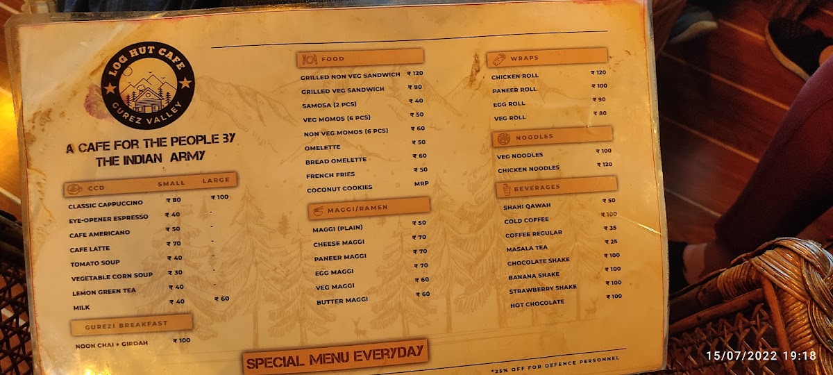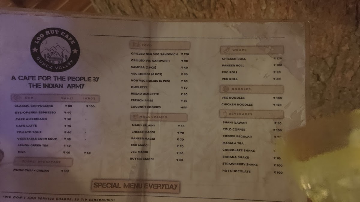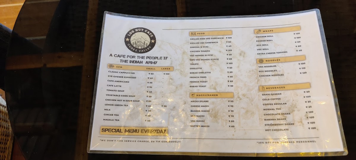 Nestled in the picturesque Gurez Valley, Log Hut Cafe Kashmir serves as a delightful haven for travelers. The cafe embodies rustic charm with its log cabin architecture, bringing warmth and comfort to all who visit.